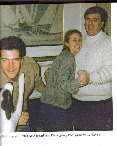 Happy Thanksgiving week. These photos come from John’s close friend William (Billy) Noonan. Pictured are John, Carolyn, Narciso Rodriguez, and John’s longtime friend Gustavo Paredes, along with Billy’s family and children, including Kiely, at John’s Hyannis Port home in 1997.