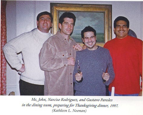 Carolyn kept the mood going with a story about Narciso’s career taking off, designing her wedding dress, then winning the MTV Designer of the Year Award. His mother stole the show, crying and shouting to anyone who would listen, “I knew it! From the time he was a little boy he was a yeen-yus!” And for the rest of the night, that was his name: Yeen-yus.